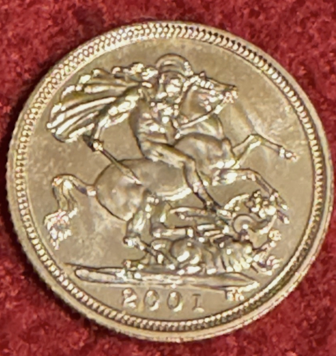 2001 QEII 22k gold sovereign coin